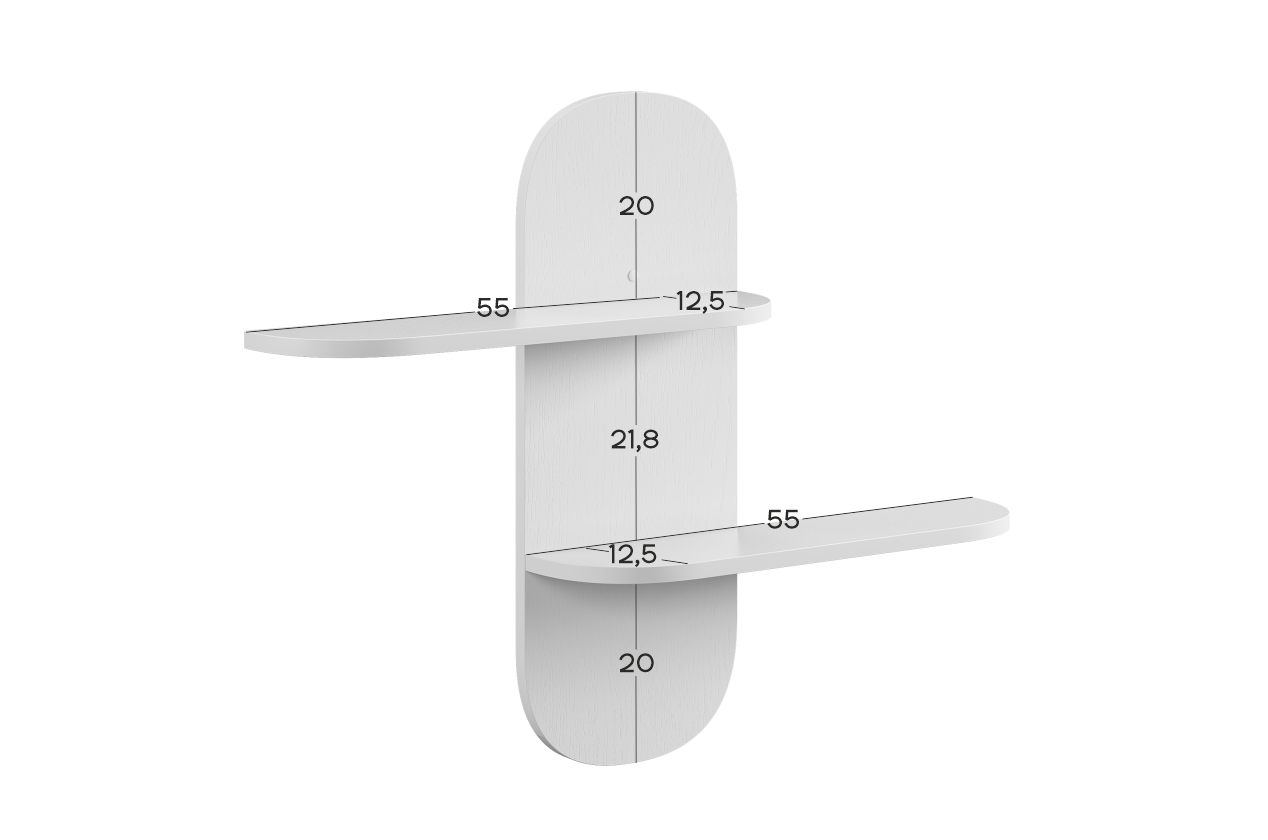 Полка выполнена из ЛДСП, что обеспечивает прочность и надёжность конструкции. Модель оснащена двумя открытыми полками, на которых удобно разместить книги, игрушки, декоративные элементы или учебные принадлежности. Открытый формат делает нужные вещи всегда доступными и визуально не перегружает пространство.