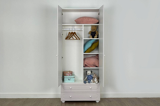 Шкаф двухдверный Милана — практичное и вместительное решение, которое помогает удобно хранить вещи и сохранять аккуратный, спокойный интерьер детской комнаты.