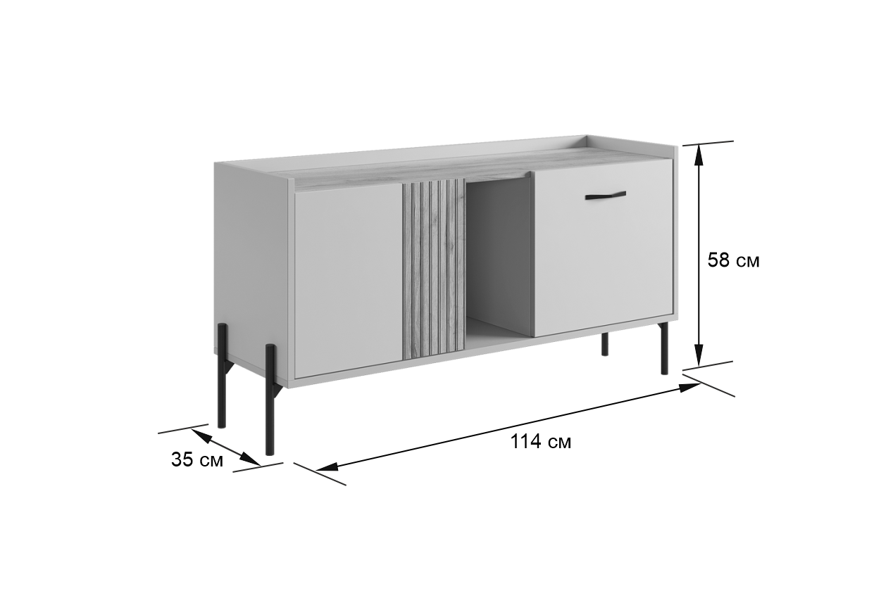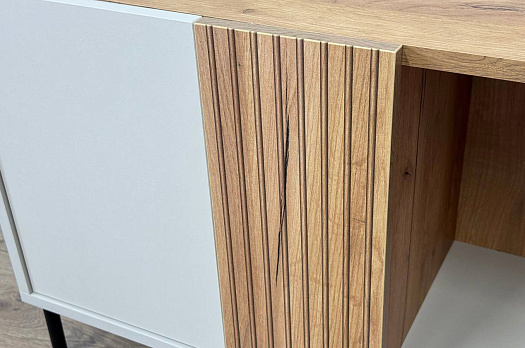 Стильная металлическая ручка придает тумбе современный и модный вид. Открытая ниша обеспечивает легкий доступ к вещам, которые вы используете часто, или может служить пространством для размещения медиа-устройств.