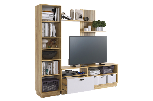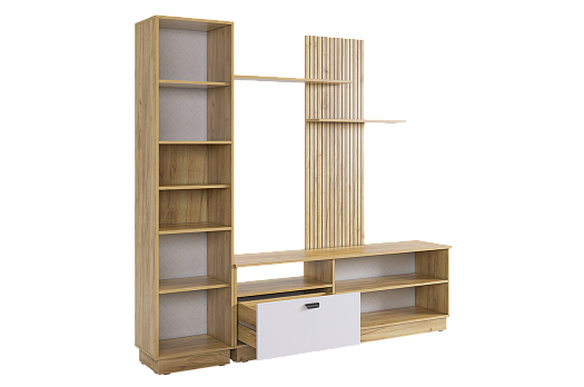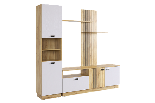 Гостиная "Моди К1" дуб крафт золотой/белое дерево из каталога Модульные гостиные купить в Тюмени в магазине мебели онлайн Мебельсон по цене 25 065 ₽