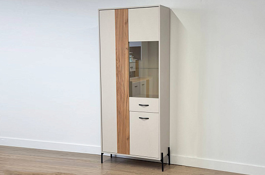Доминика Шкаф двухдверный (со стеклом) кашемир/дуб крафт золотой из каталога Витрины купить в Тюмени в магазине мебели онлайн Мебельсон по цене 21 830 ₽