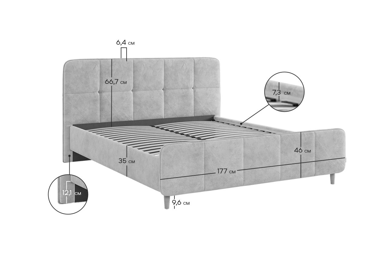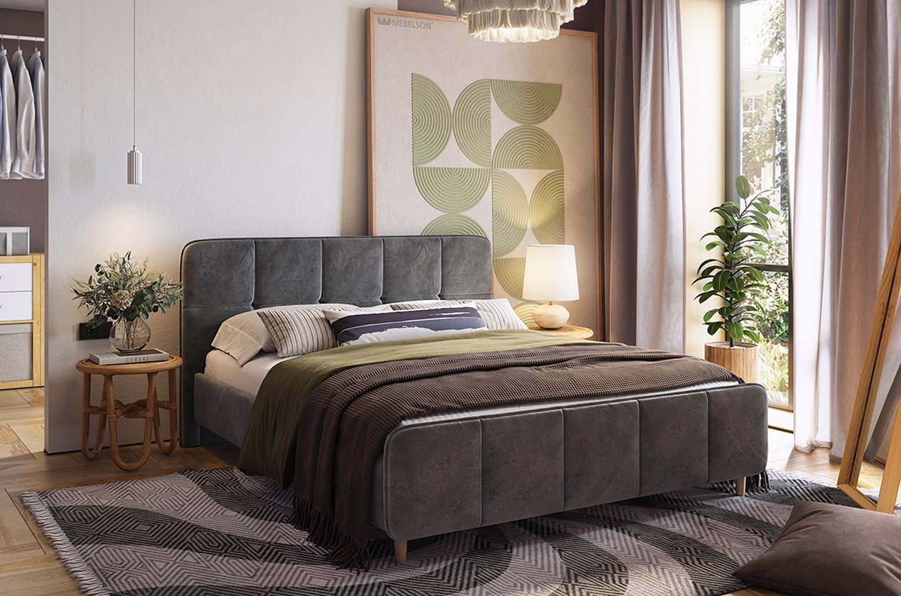 Кровать с основанием Грета 160х200 см грей алькантара (велюр) из каталога Двуспальные кровати купить в Тюмени в магазине мебели онлайн Мебельсон по цене 34 535 ₽