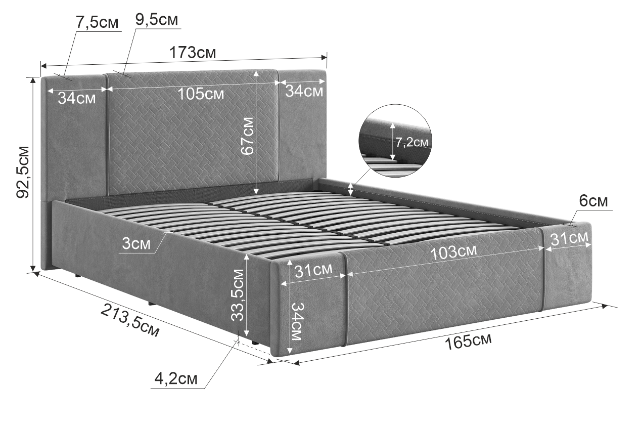 • Основание кровати: Ортопедическое основание с подъемным механизмом