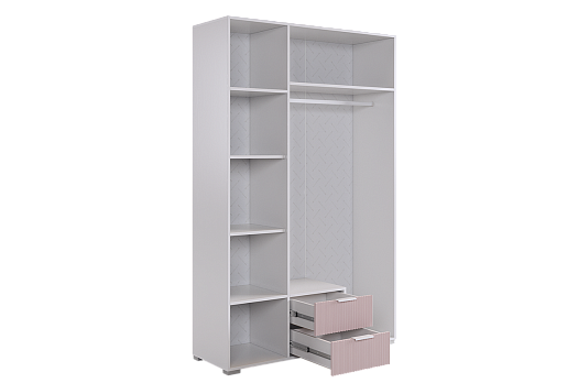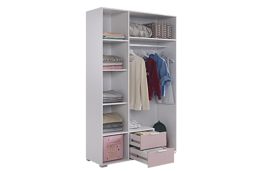 Универсальная сборка позволяет легко и быстро монтировать шкаф "Зефир". Две секции - одна с штангой и двумя полками, а вторая с пятью полками - обеспечивают удобство и легкость в хранении ваших вещей.