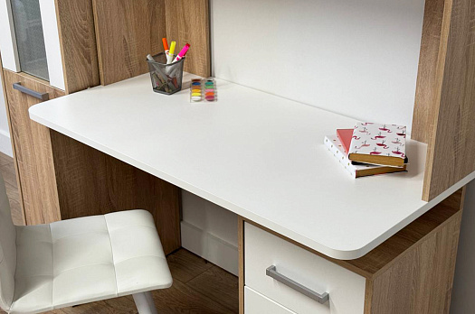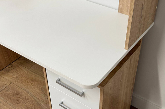 Стол Лайт-2 порадует вас не только своим внешним видом, но и функциональностью. Скругленные углы столешницы делают использование стола безопасным, а наличие выдвижных ящиков и удобных ниш делает его практичным. Отличное решение для школьного уголка или современного домашнего офиса.