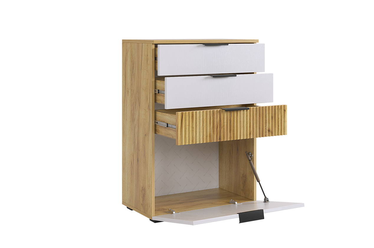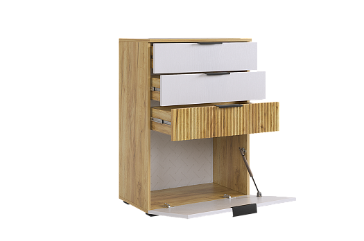 Комод "Бери"- это 3 вместительных ящика и откидная секция снизу, актуальное решение для гостиной, спальни, прихожей, детской и даже кабинета.