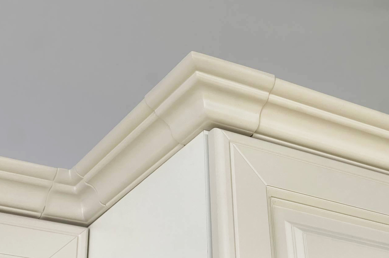 Карниз прямой из серии «Мишель» предназначен для декорирования навесных шкафов сверху.
