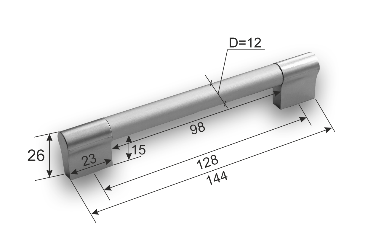 Ручка 0006 (128) хром матовый/хром из каталога Кухонные ручки купить в Тюмени в магазине мебели онлайн Мебельсон по цене 95 ₽