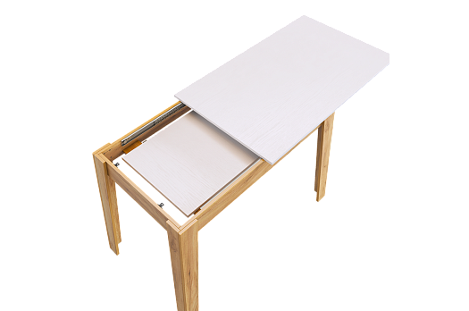 * благодаря раздвижному механизму стол легко превращается из компактного в просторный вариант;