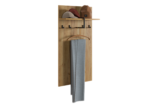 Крючки предоставляют удобное место для хранения верхней одежды, сумок или аксессуаров. Держатель для плечиков позволяет организовать хранение одежды, сохраняя ее в идеальном состоянии. Полка служит дополнительным пространством для хранения головных уборов.