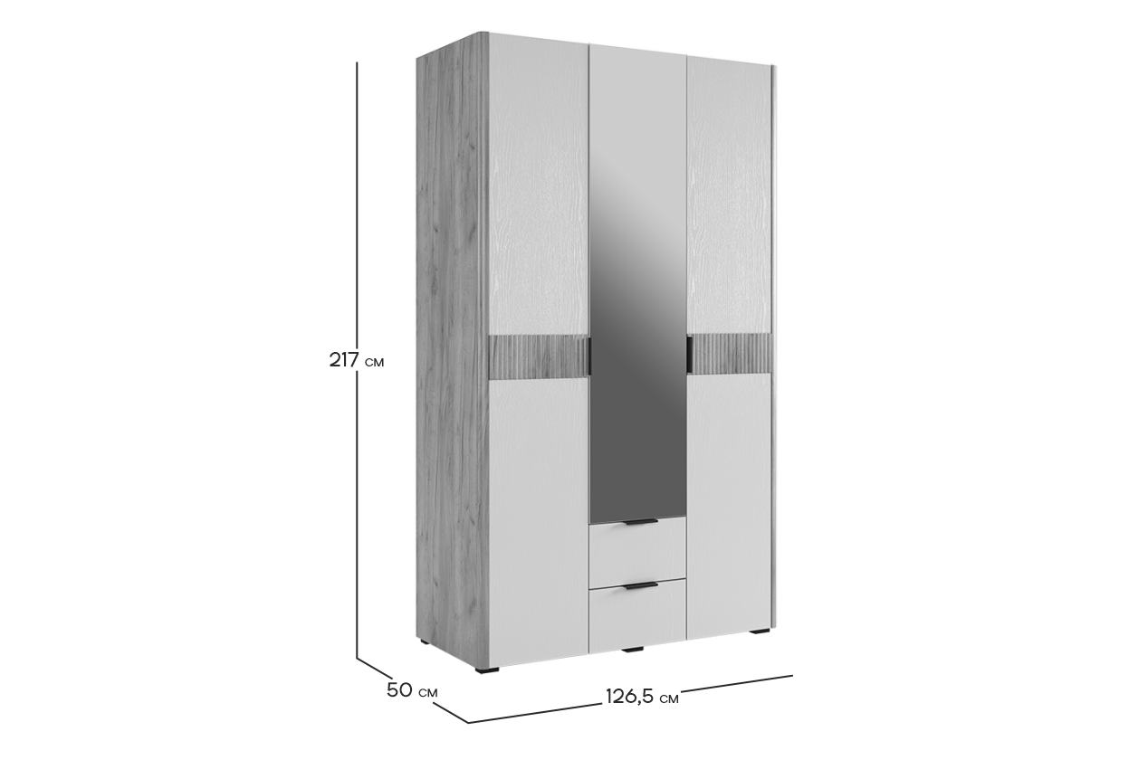 Адам Шкаф трехдверный (зеркало) дуб крафт золотой/белое дерево из каталога Шкафы купить в Тюмени в магазине мебели онлайн Мебельсон по цене 44 405 ₽