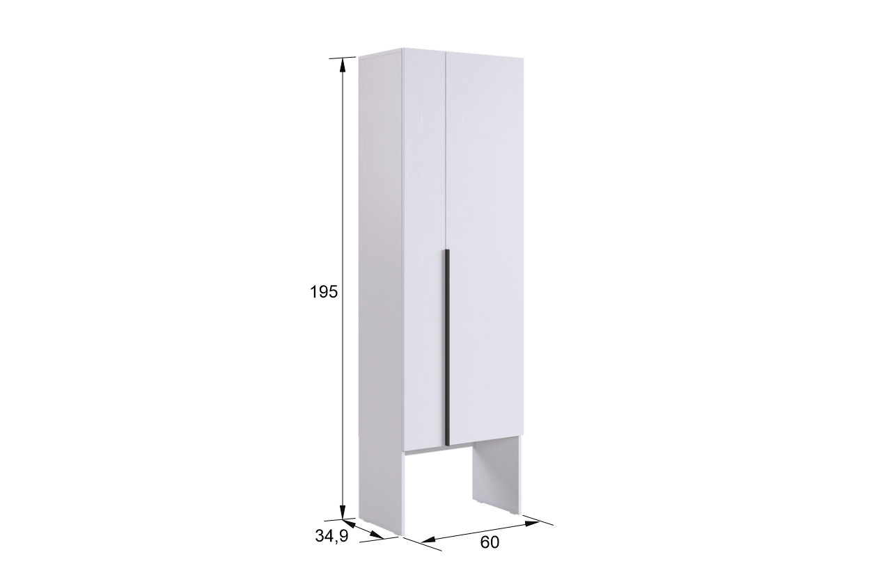 Изготовленный из высококачественного ЛДСП толщиной 16 мм, шкаф гарантирует прочность и долговечность. Длинные пластиковые ручки добавляют современный акцент и удобство в использовании.