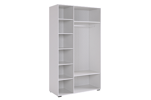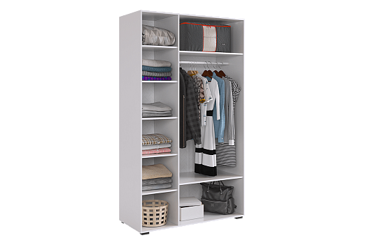 - Практичное наполнение: две секции, одна с штангой и двумя полками, вторая с пятью полками