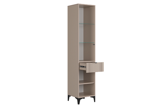Рич Шкаф однодверный (со стеклом) кашемир/фрапучино матовый/черный из каталога Модульные гостиные купить в Тюмени в магазине мебели онлайн Мебельсон по цене 23 825 ₽