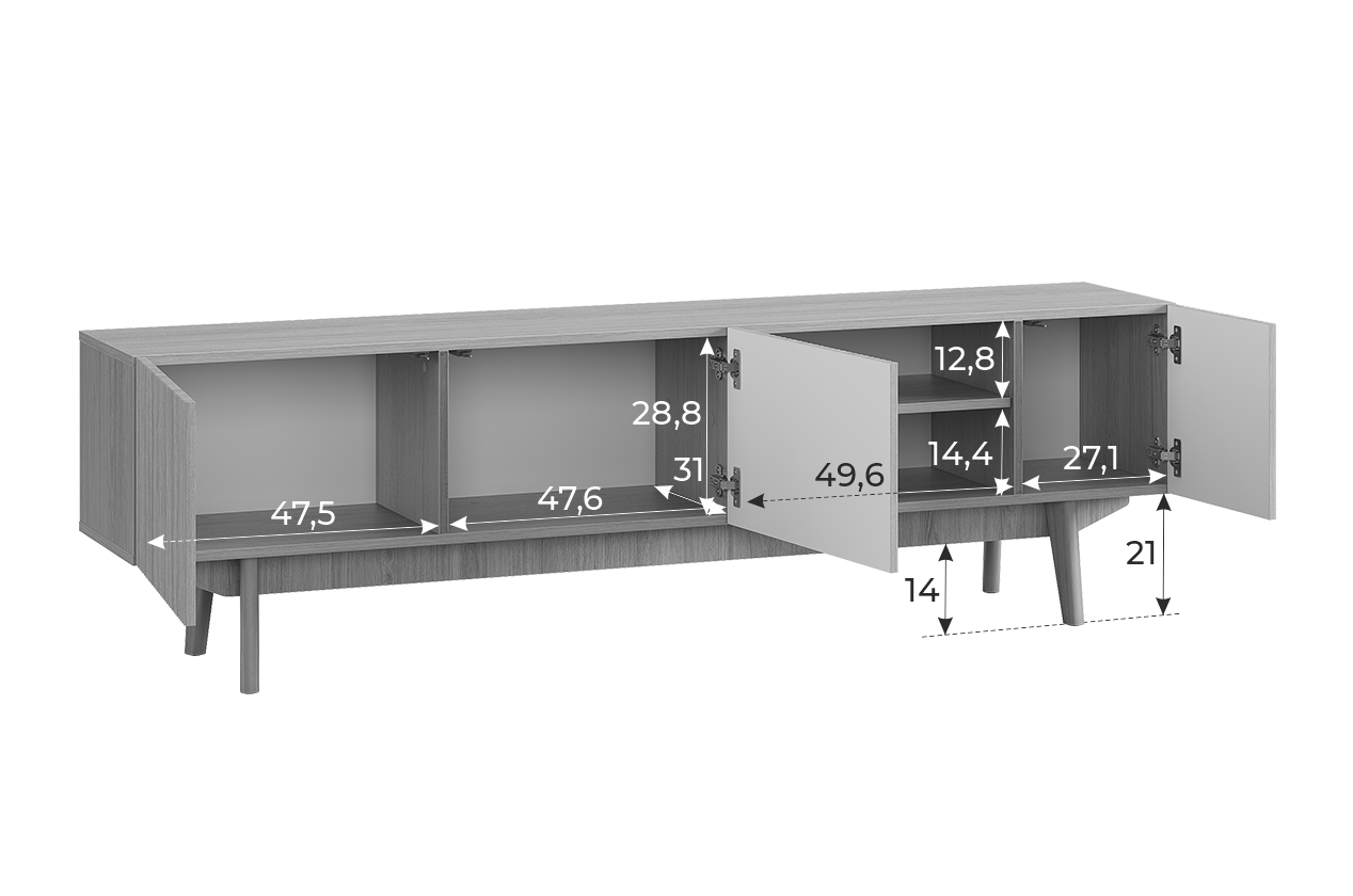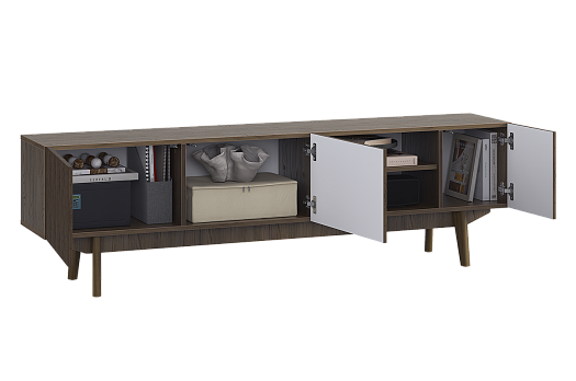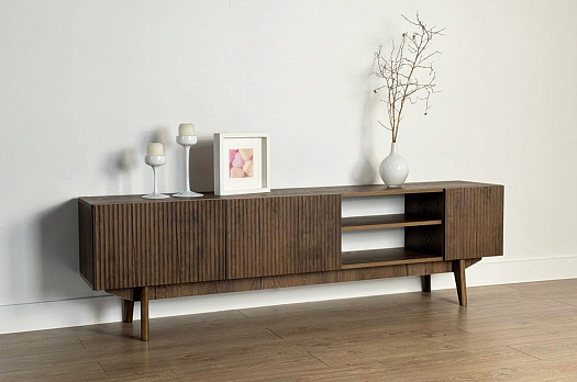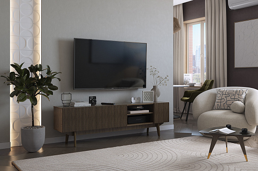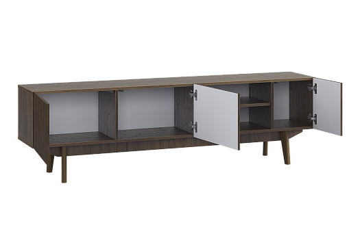 Высокие опоры из массива дерева не только дополняют дизайн тумбы, но и позволяют роботу-пылесосу свободно проходить под ней. Тумба «Мира» 180 станет отличным местом для размещения телевизора и хранения медиатехники.